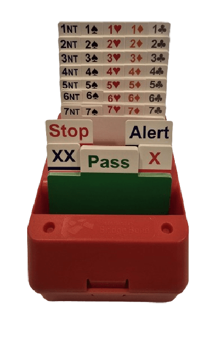 Elke speler heeft zijn eigen biedbox. Wanneer je aan de beurt bent, trek je de kaart met jouw bieding en leg je die vóór je neer, zodat iedereen aan tafel deze goed kan zien. De kaarten worden op een bepaalde manier over elkaar gelegd, zodat het biedverloop netjes zichtbaar blijft. Zo wordt verwarring voorkomen en worden misverstanden tot een minimum beperkt.