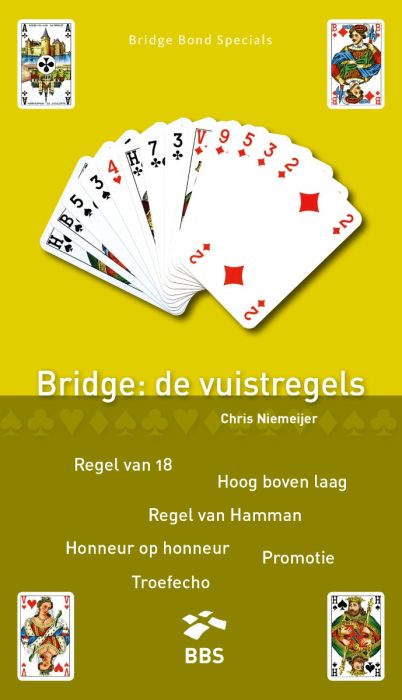 Bridge is een spel van precisie en strategie en het kennen van de bridge basisregels kan je helpen om een succesvolle speler te worden. In dit BBS boek worden de belangrijkste vuistregels van bridge uitgelegd en geïllustreerd aan de hand van voorbeelden en oefeningen. Leer hoe je je biedingen kunt verbeteren, hoe je de juiste kaart kunt spelen en hoe je je bridge strategie kunt aanpassen aan de hand van de situatie. Dit boek, geschreven door Chris Niemeijer, is geschikt voor zowel beginners als gevorderde spelers die hun vaardigheden willen verbeteren.