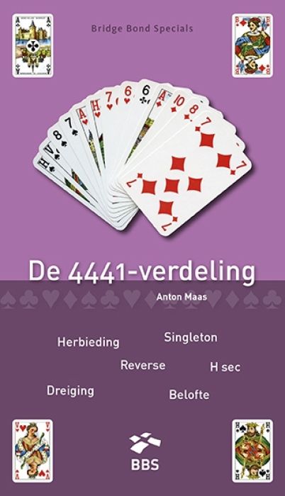 Een 4441-verdeling is een erg moeilijke verdeling. De cruciale vraag is: wat is de singleton waard? Dat hangt af van de hand van de partner. Hebben jullie samen een fit en maak jij die kleur troef? Dan kan de singleton extra slagen opleveren. Echter, heb je een singleton in een lange kleur van partner dan is de singleton helemaal niet mooi. Belangrijk bij een 4441-verdeling is de herbieding. Met name als partner in de kleur van de singleton antwoordt. Bedenk reeds bij de keuze van de opening wat dan jouw herbieding wordt. Behalve het openen en het herbieden zal ook het bijbieden en het volgen met een 4441-verdeling aan bod komen.