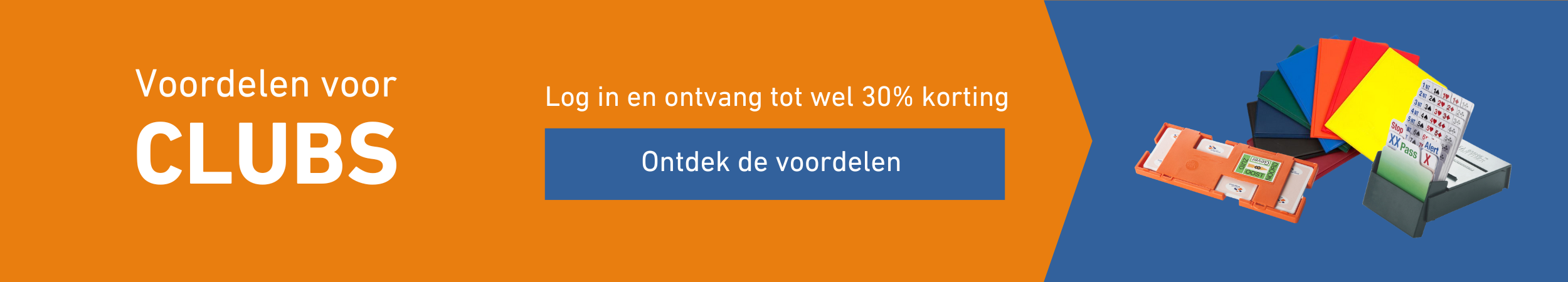 Ben jij een bridgeclub en wil jij al je leden voorzien van het beste bridge materiaal? Neem dan een kijkje in de onderstaande categorieën waar de beste producten op het gebied van wedstrijden materialen, spelregels en dupliceren aan bod komen. Of je nu op zoek bent naar hoogwaardig wedstrijdmateriaal, spelregelboekjes, dupliceerboards of stickervellen. De Bridge- en Boekenshop heeft al deze producten om jouw club te voorzien van alle materialen die je nodig hebt!