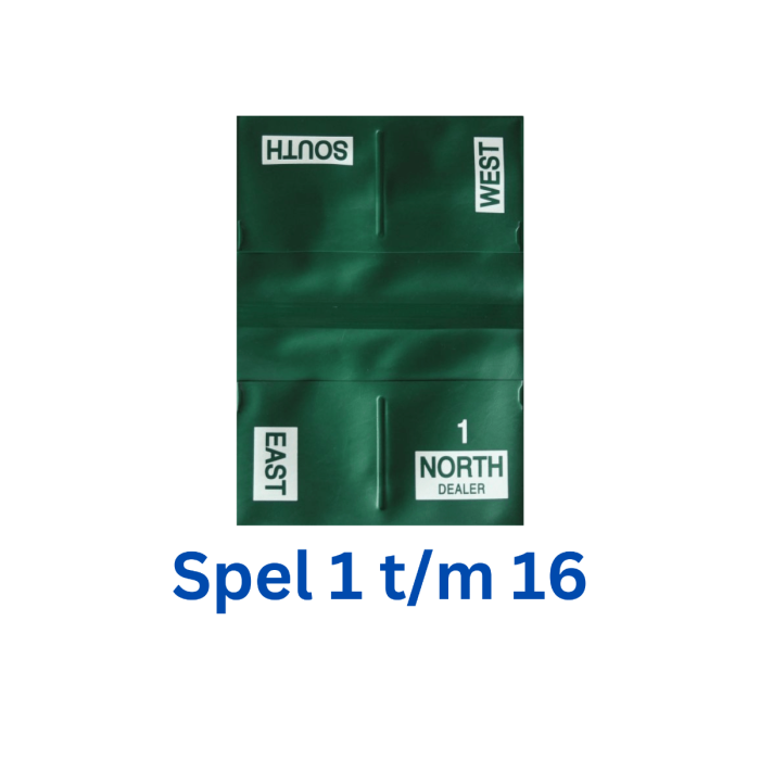 Deze groene softboards zijn ideaal om te gebruiken tijdens een gezellig avondje thuisbridge. Elk mapje is voorzien van een spelnummer en de kwetsbaarheid. Zo zijn ze ook heel geschikt voor docenten die hun cursisten tijdens de lessen willen laten oefenen.