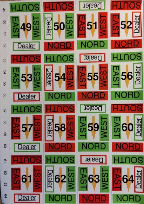 Voor het herkennen van de spelnummers en weten of je kwetsbaar of niet-kwetsbaar bent, gebruik je het Stickervel voor Superplusboards of Dupliceerboards! Creëer overzichtelijke en gestructureerde speelsessies met behulp van deze bridge stickers. Met de Stickervellen voor Superplusboards en Dupliceerboards kun je je bridge-spellen naar een professioneel niveau tillen. Bereid je voor op georganiseerde en succesvolle bridge-sessies, waar elk detail telt.
